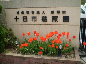 春の訪れ 十日市慈照園の花壇にチューリップがきれいに咲き揃いました ちょうど入口のところに咲いており利用者様と一緒に赤いチューリップを楽しんでいます また、梅の木の下にシャクナゲの花も咲きはじめました 皆様も十日市慈照園に訪れた春をご覧ください
