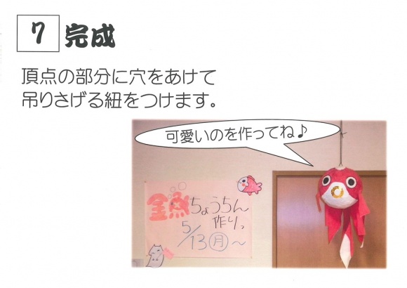 5月のいこい活動の目玉 「金魚ちょうちん作り」 まだ5月の中旬に差し掛かったくらいだというのに初夏を思わせる日があります。この間は29度の夏日だったとか・・・ 暑い の一言です。( ̄Д ̄; そんな暑い日がをちょっとでも快適に過ごすために今月のいこい活動は 見て涼もうと言うことで 「金魚ちょうちんづくり」 となりました。 以下作り方です。 それぞれに作ってもらったり、個人個人で作ってもらったり。 さて、どんなものができるか今から楽しみです(* ̄ー ̄)v